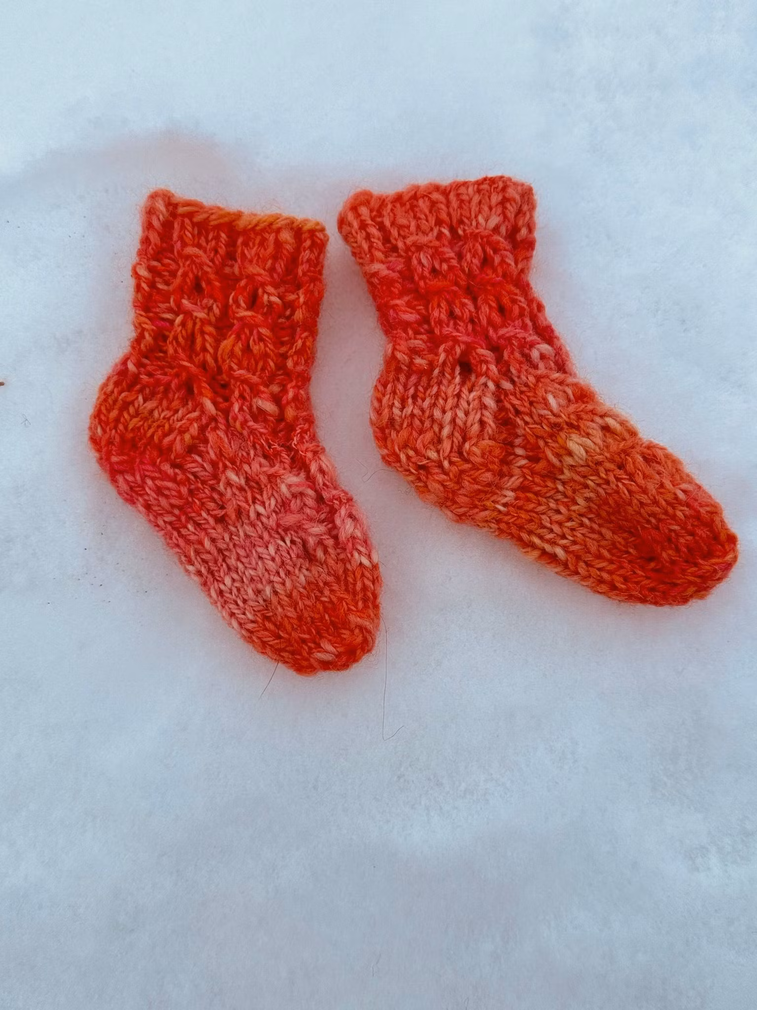 Babysokker 80,- Babysokker med falsk flette, strikket i håndspunnet ullgarn. På lager. Legg i handlekurv Del Lagerbalanse: 1 Artikkelnummer: 244 Informasjon Tilbakemeldinger Babysokker med falsk flette, strikket i håndspunnet ullgarn.