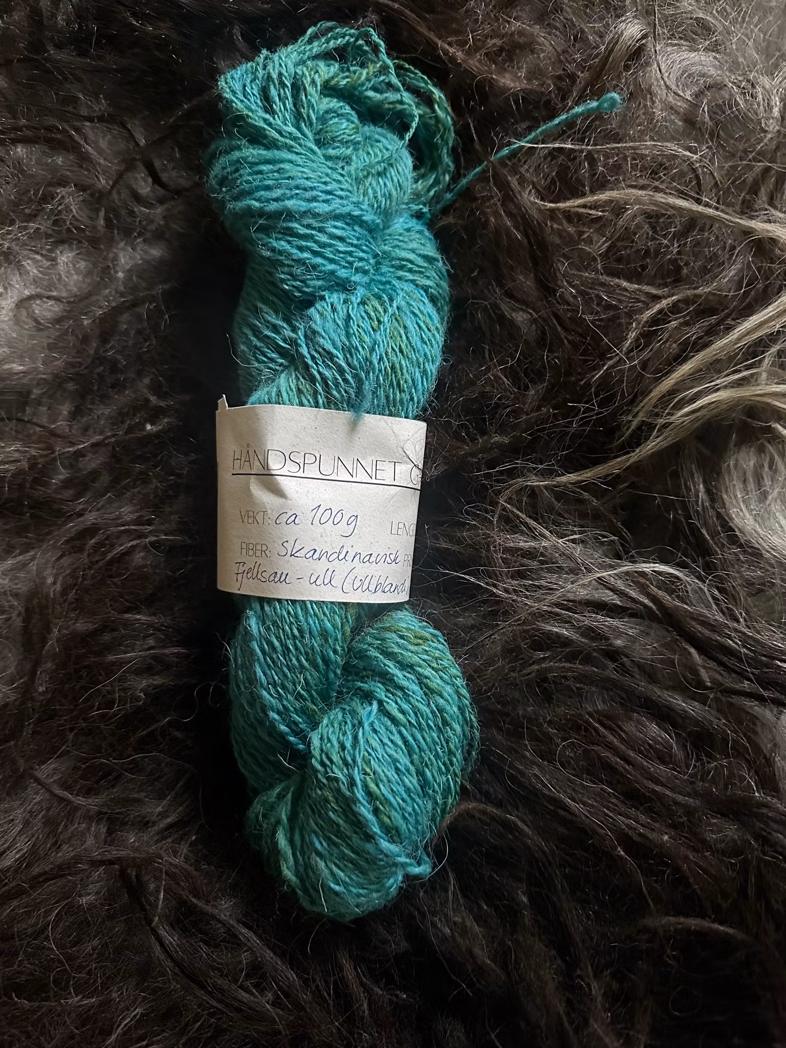 Håndspunnet garn av skandinavisk fjellsau - her er det ullblanding av nordiske saueraser med opprinnelse i ursauen. Garnet er glansfullt og sterkt. 100 gram, 184 meter.