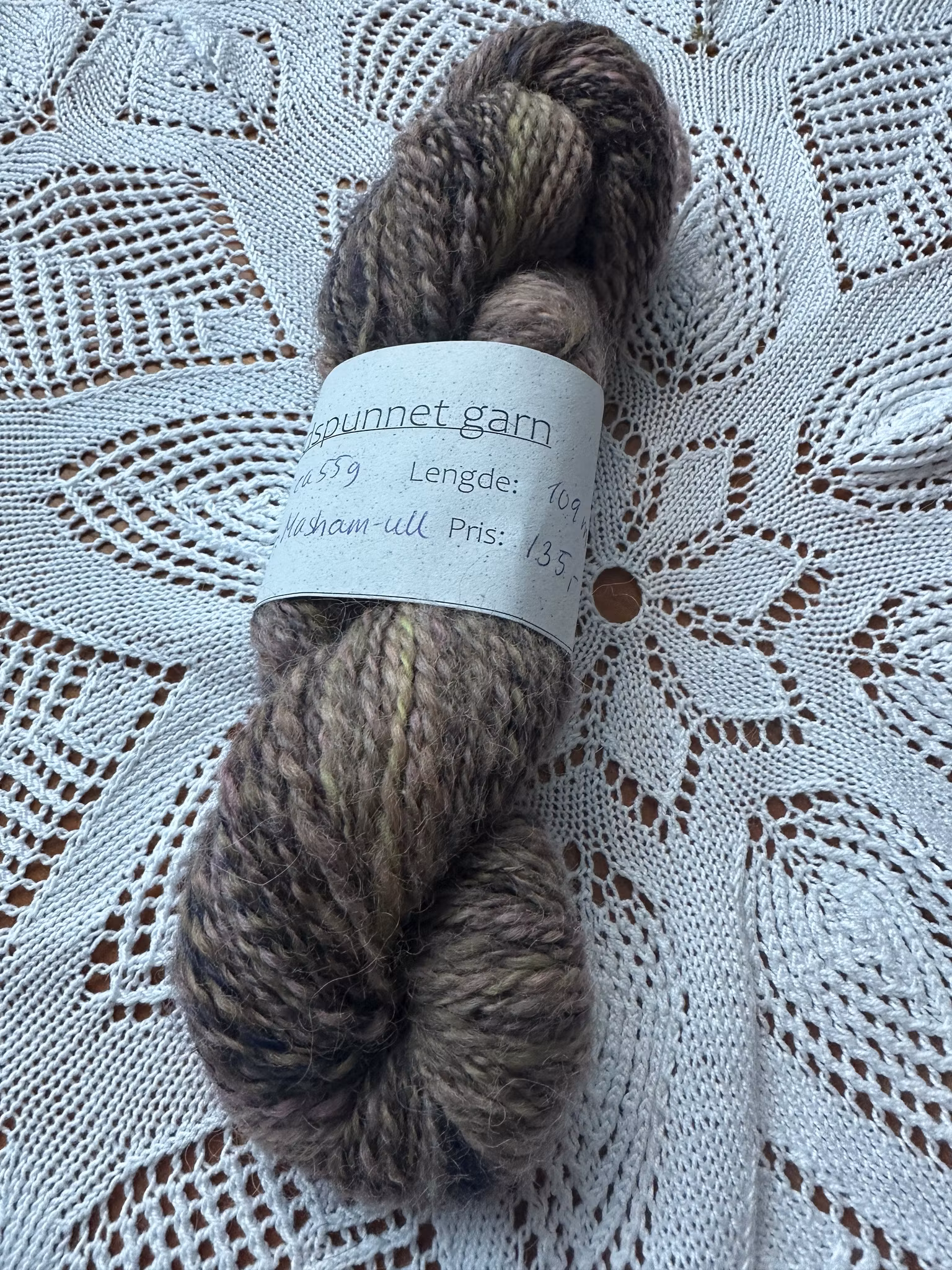 Håndspunnet garn 135,- Håndspunnet garn av masham-ull. 55 gram, 109 meter. På lager. Legg i handlekurv Del Lagerbalanse: 1 Artikkelnummer: 478 Informasjon Tilbakemeldinger Håndspunnet garn av masham-ull. 55 gram, 109 meter.