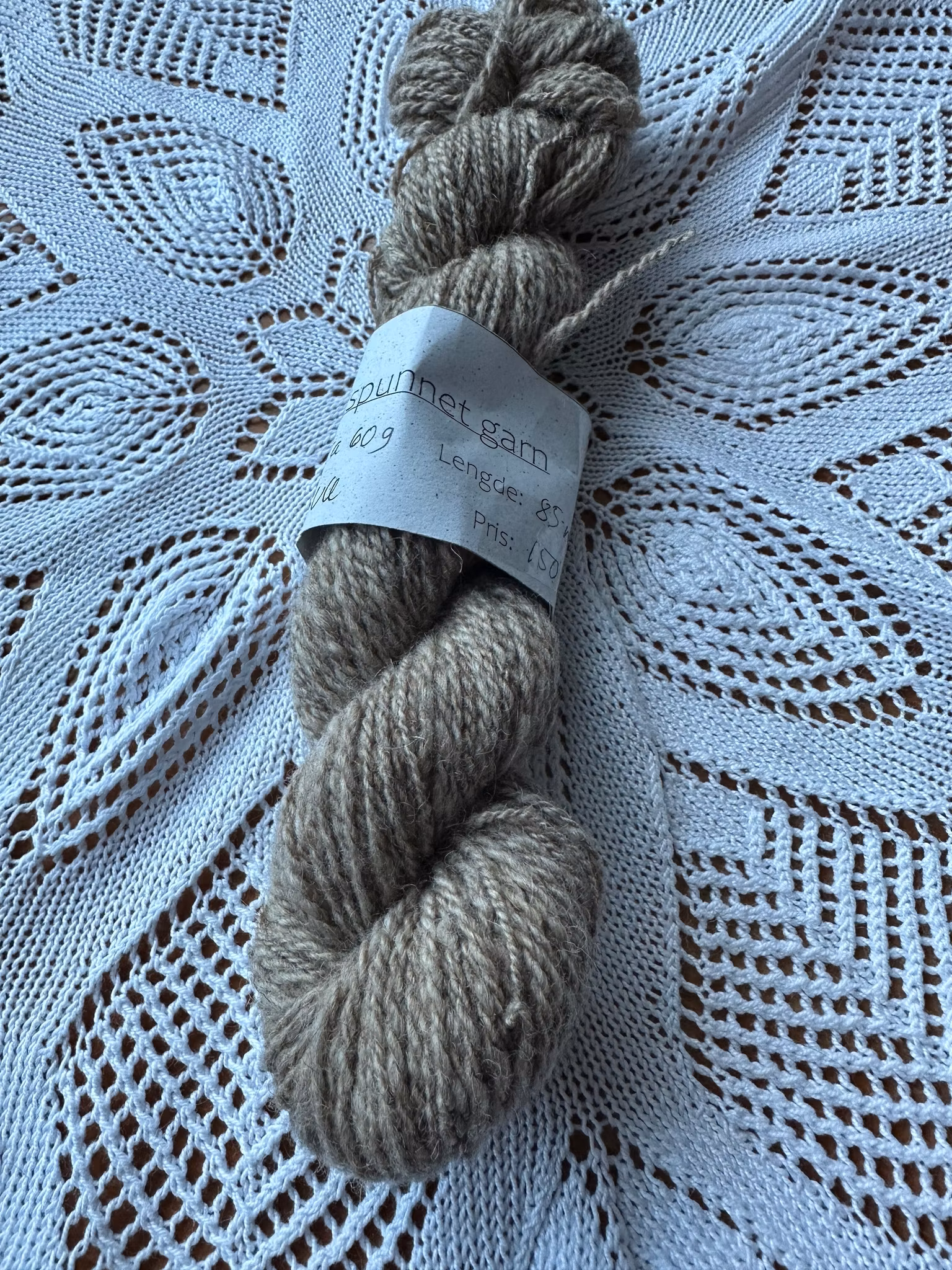 Håndspunnet ullgarn 150,- Håndspunnet ullgarn, ca 60 gram, 85 meter. På lager. Legg i handlekurv Del Lagerbalanse: 1 Artikkelnummer: 471 Informasjon Tilbakemeldinger Håndspunnet ullgarn, ca 60 gram, 85 meter.