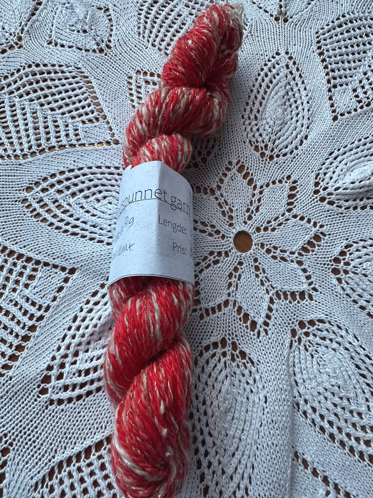 Håndspunnet garn 150,- Håndspunnet garn i ullblanding, med glitter! Skikkelig julegarn. 50 gram, 129 meter. På lager. Legg i handlekurv Del Lagerbalanse: 1 Artikkelnummer: 479 Informasjon Tilbakemeldinger Håndspunnet garn i ullblanding, med glitter! Skikkelig julegarn. 50 gram, 129 meter.