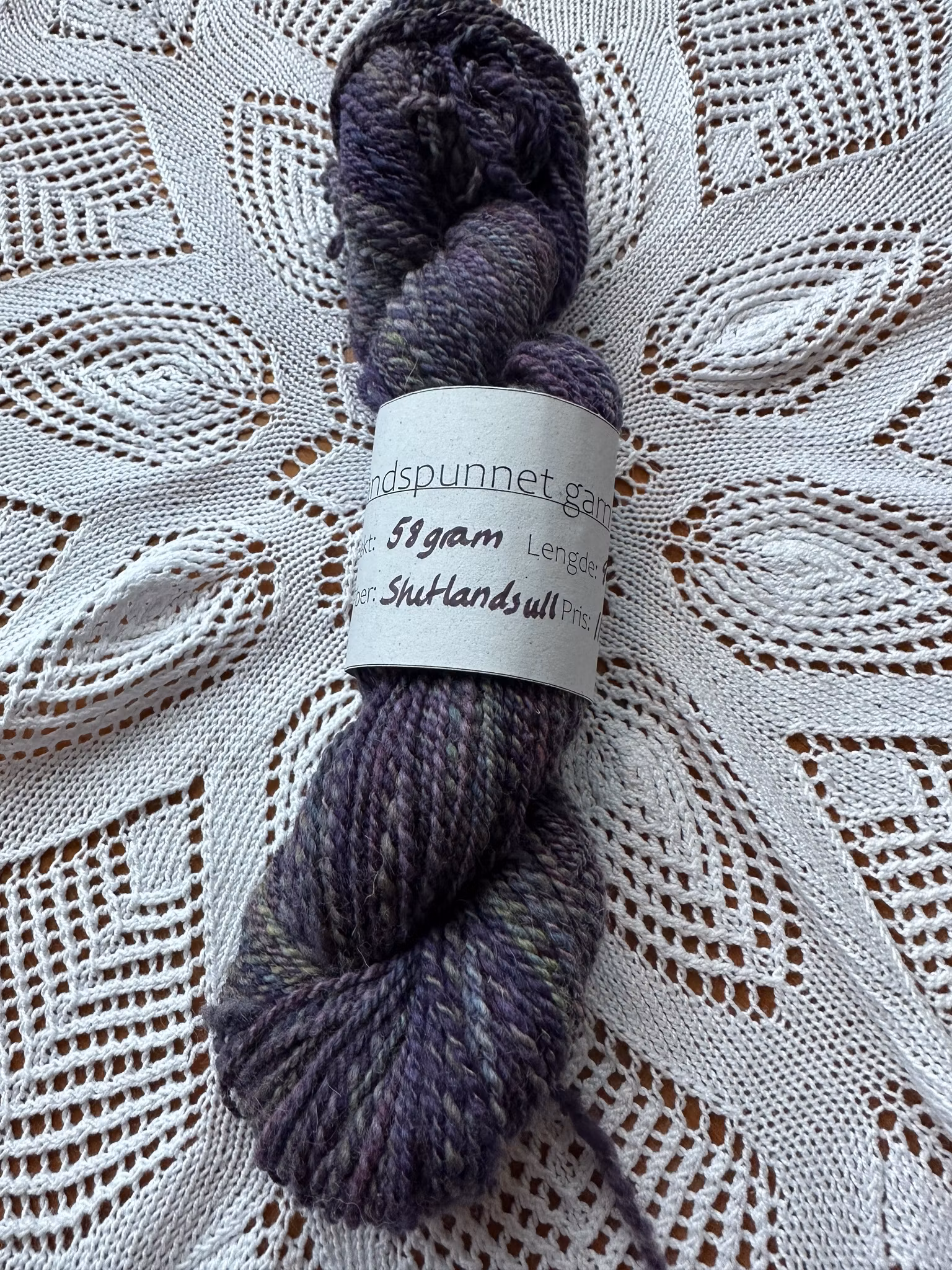 Håndspunnet garn 114,- Håndspunnet garn av shetlandsull. 58 gram, 99 meter. På lager. Legg i handlekurv Del Lagerbalanse: 1 Artikkelnummer: 431 Informasjon Tilbakemeldinger Håndspunnet garn av shetlandsull. 58 gram, 99 meter.