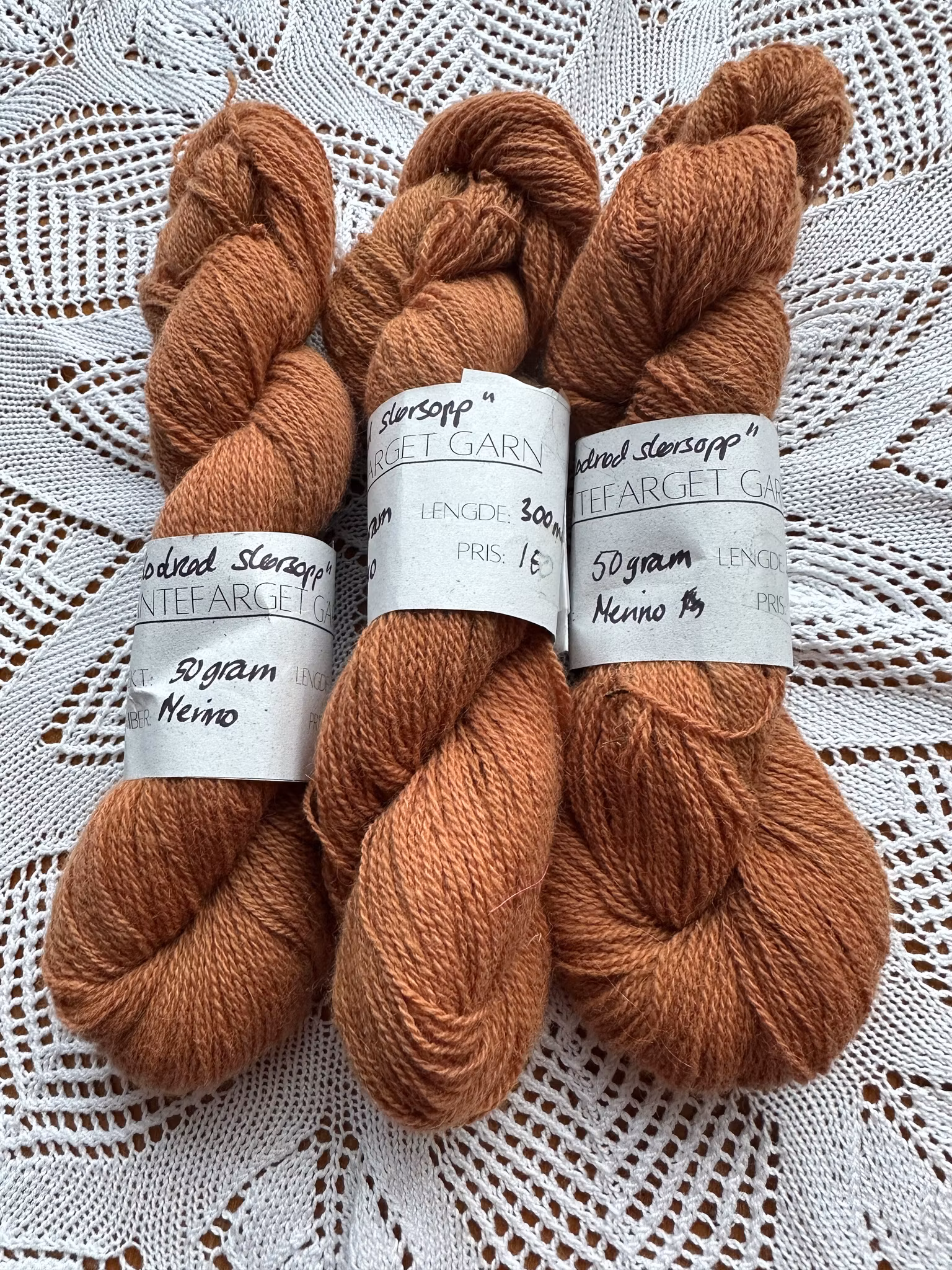 Plantefarget merinoull 150,- Tynn, myk og ubehandla merinoull farget med blodrød slørsopp. 50 gram, 300 meter. Farge Mørk Lys På lager. Legg i handlekurv Del Lagerbalanse: Artikkelnummer: 416 Informasjon Tilbakemeldinger Tynn, myk og ubehandla merinoull farget med blodrød slørsopp. 50 gram, 300 meter.