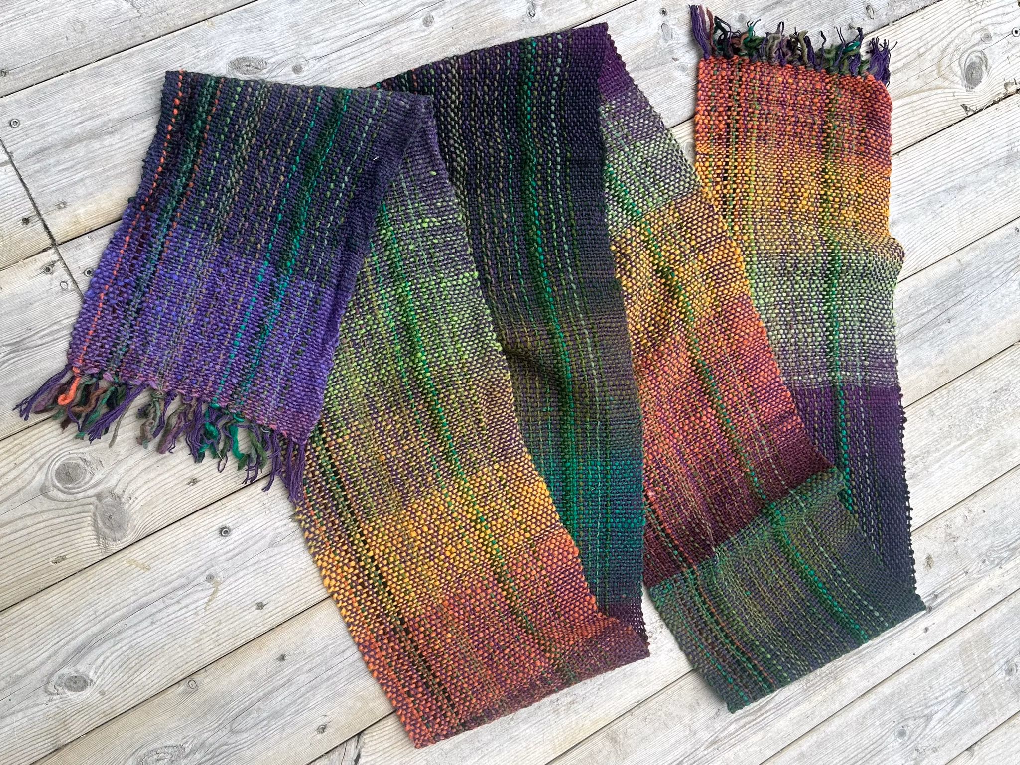 Vevd skjerf 600,- Langt skjerf vevd i japansk ullgarn. Flotte fargeskift og mye struktur. Varmt og godt. Produktet finnes dessverre ikke i lager. Del Artikkelnummer: 553 Informasjon Tilbakemeldinger Langt skjerf vevd i japansk ullgarn. Flotte fargeskift og mye struktur. Varmt og godt.