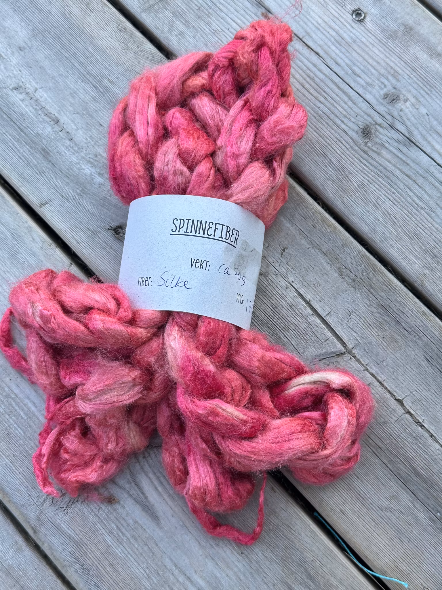Håndfarget silkefiber 175,- Håndfarget silketops, ca 70 gram. På lager. Legg i handlekurv Del Lagerbalanse: 1 Artikkelnummer: 516 Informasjon Tilbakemeldinger Håndfarget silketops, ca 70 gram.
