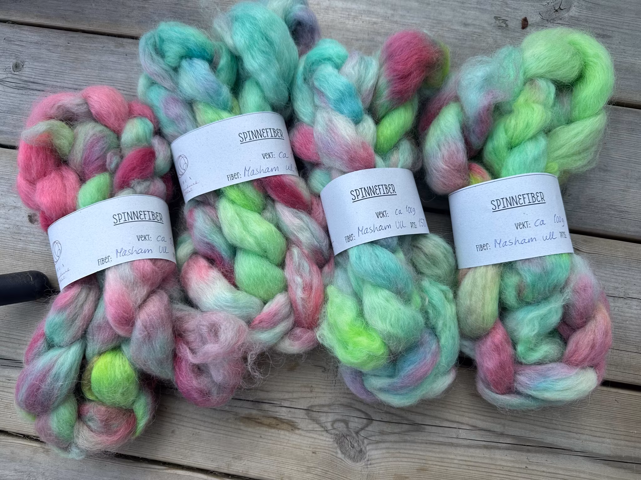 Håndfarget masham-ull 150,- Håndfarget masham-ull. Ca 100 gram pr flette. På lager. Legg i handlekurv Del Lagerbalanse: 4 Artikkelnummer: 511 Informasjon Tilbakemeldinger Håndfarget masham-ull. Ca 100 gram pr flette.