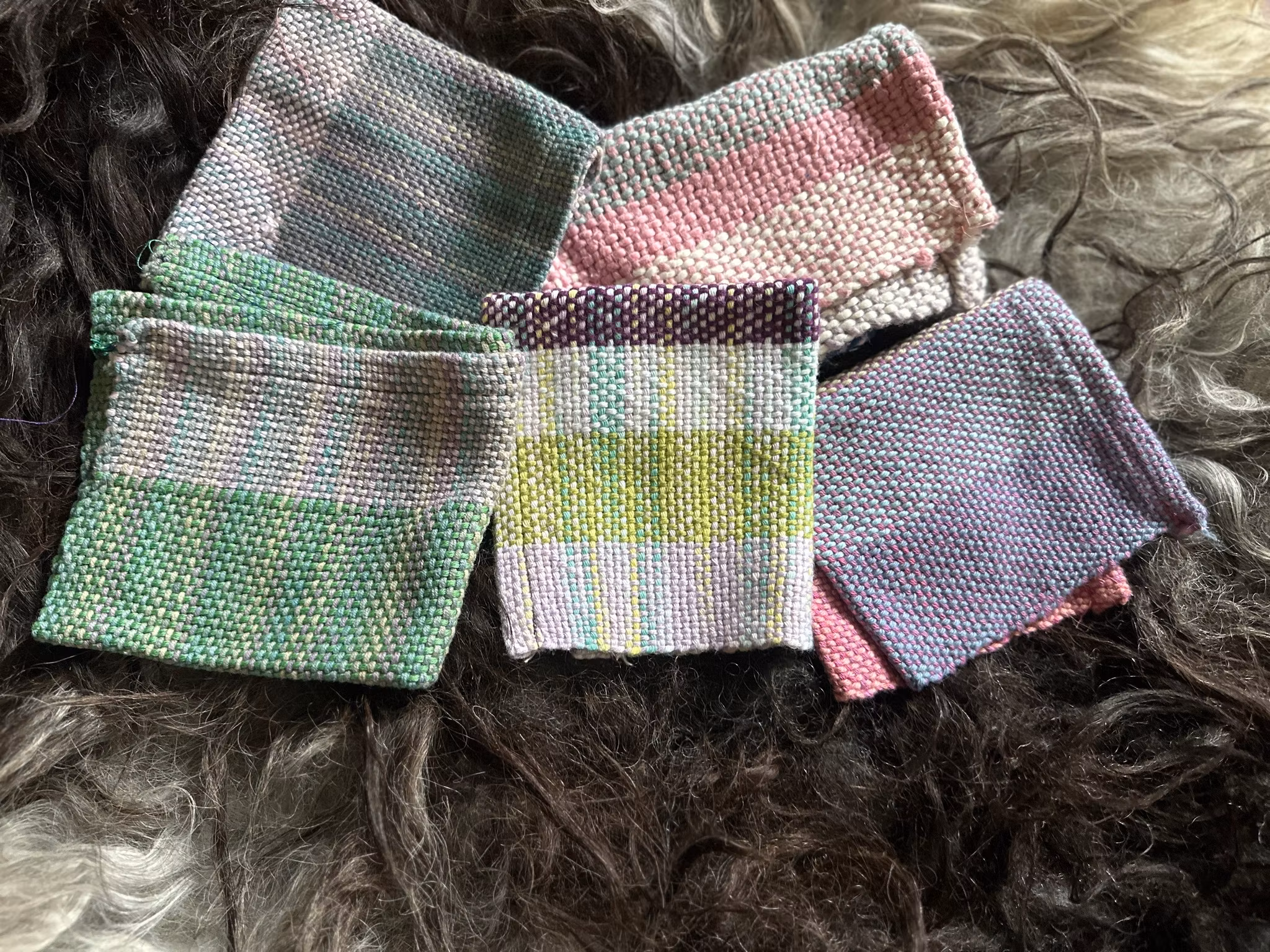 Kjøkkenkluter i restegarn av bomull, vevd på grindvev. Disse kan ha litt flere garnskjøter enn de andre klutene, siden de er vevd av forskjellige rester, men de vasker kjøkkenbenken akkurat like ren som de andre. Fint å bruke opp alt garnet :)